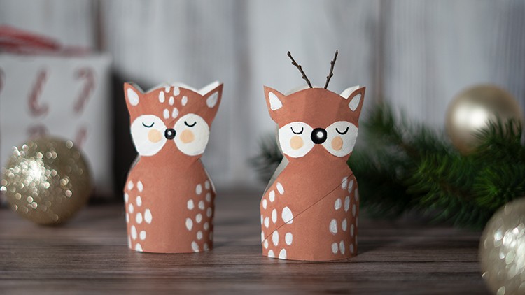 Auf zwei Seiten der Toilettenpapierrolle die Umrisse des Rehs aufzeichnen.
